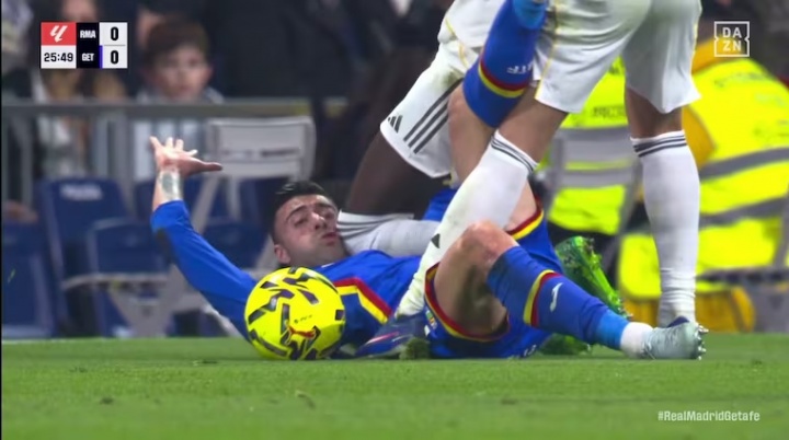 西甲第26轮,皇马对阵赫塔费。25分钟,里科尝试突破倒地,被吕迪格用膝盖顶到头部。裁判没有表示,VAR也未介入。