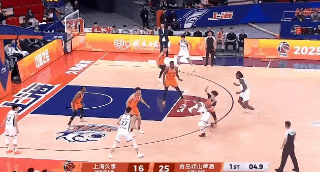 CBA常规赛,上海对阵青岛的比赛正在进行中。第一节比赛中,吕俊虎接球三分投进,青岛首节结束27-16领先上海。CBA常规赛,上海对阵青岛的比赛正在进行中。第一节比赛中,吕俊虎接球三分投进,青岛首节结束27-16领先上海。