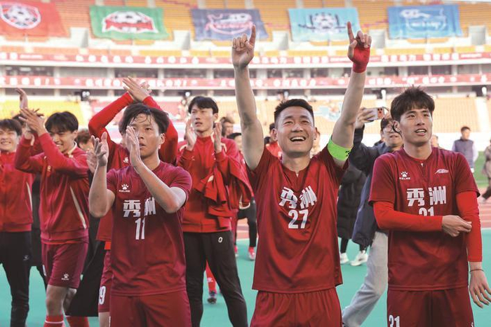 本报讯 3月14日下午,伴随着终场哨音的响起,场上比分最终定格在4:1,秀洲队战胜平湖队,捧起了2026嘉兴市城市足球冠军联赛(“嘉冠”联赛)的冠军奖杯。